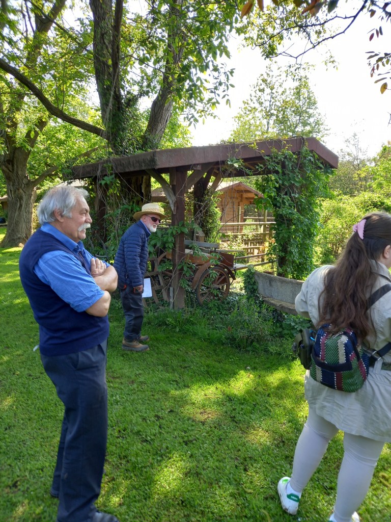 Una visita poi anche alla collezione di strumenti agricoli antichi e ai suoi famosi spaventapasseri. Il giro si è concluso nel grande frutteto che ospita molte varietà di frutta anche rare.