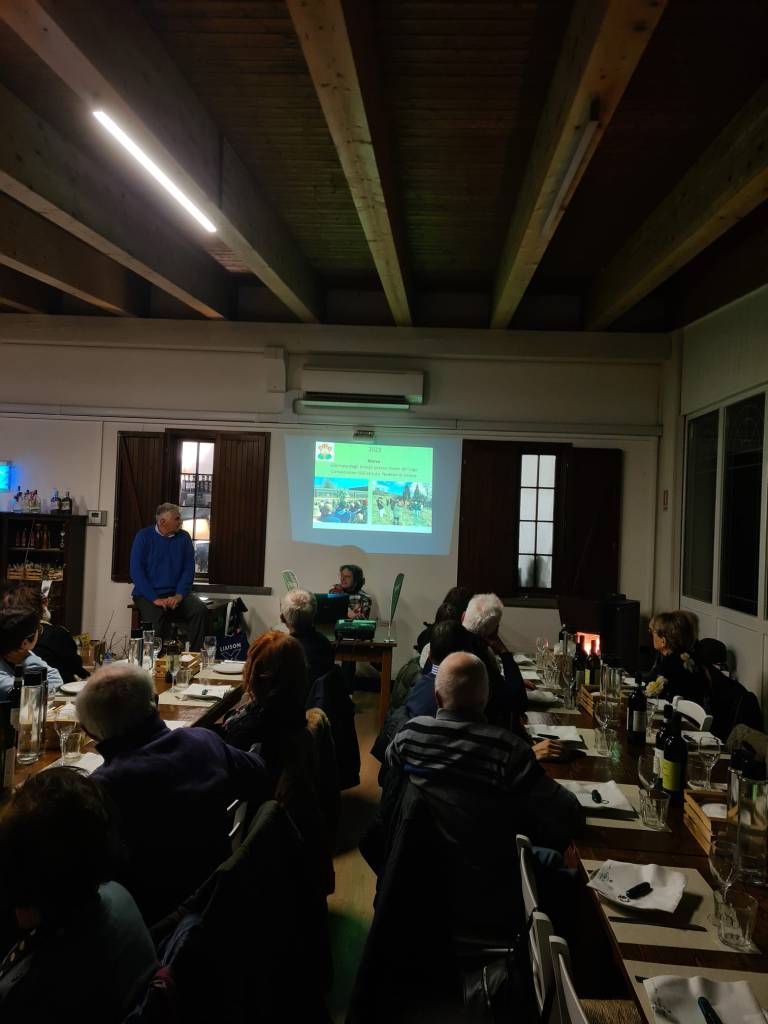 All’inizio sono stati illustrati gli eventi organizzati dalla nostra Associazione nel 2023 e le molte iniziative previste per il 2024; quindi la gustosa cena, il brindisi e i dolci, tutto assai apprezzato dai partecipanti. La cena è stata accompagnata dai vini della Valsorda Winery di Mornico Losara, Oltrepò Pavese.